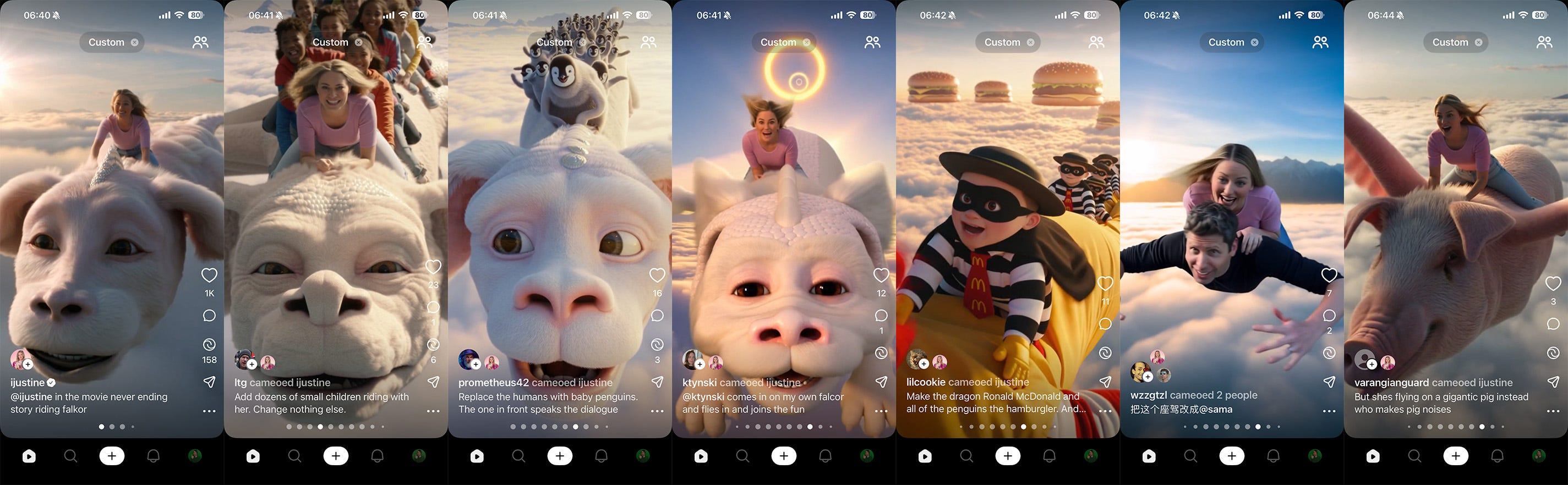 Vid första anblick Àr Sora-appen uppbyggd precis som ett socialt nÀtverk dÀr vi konsumerar vertikal video. Du möts av ett flöde av filmer som andra har skapat. Men precis som nÀr textbaserade sociala nÀtverk kom sÄ Àr varje post en inbjudan till interaktion. TikTok har funktionerna Duet och Stitch för att addera videobaserade kommentarer. Men Sora har nÄgot nytt som ingen annan har, en remix-knapp som gör det enkelt att bygga vidare pÄ en rolig video du ser och göra nÄgot Ànnu roligare av den.