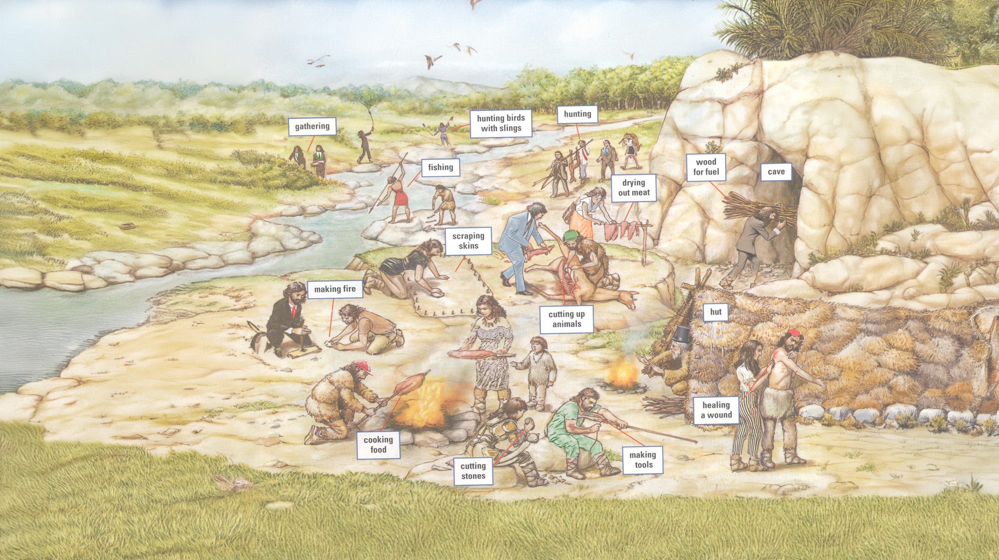 Neolitiska revolutionen kallas perioden dÄ mÀnniskor slutade vara samlare-jÀgare och gick över till att bli jordbrukare. James Suzman, doktor i antropologi, har forskat kring mÀnniskans syn pÄ arbete genom att i 25 Är studera kulturer i Afrika dÀr de generation efter generation valt att fortsÀtta vara samlare-jÀgare. En insikt han har fÄtt Àr att i samlar-jÀgarkulturen handlar varje arbetsinsats om att fokusera pÄ nuet. LÄngsiktig planering Àr meningslös dÄ ingen vet de exakta förutsÀttningarna för nÀsta dag.