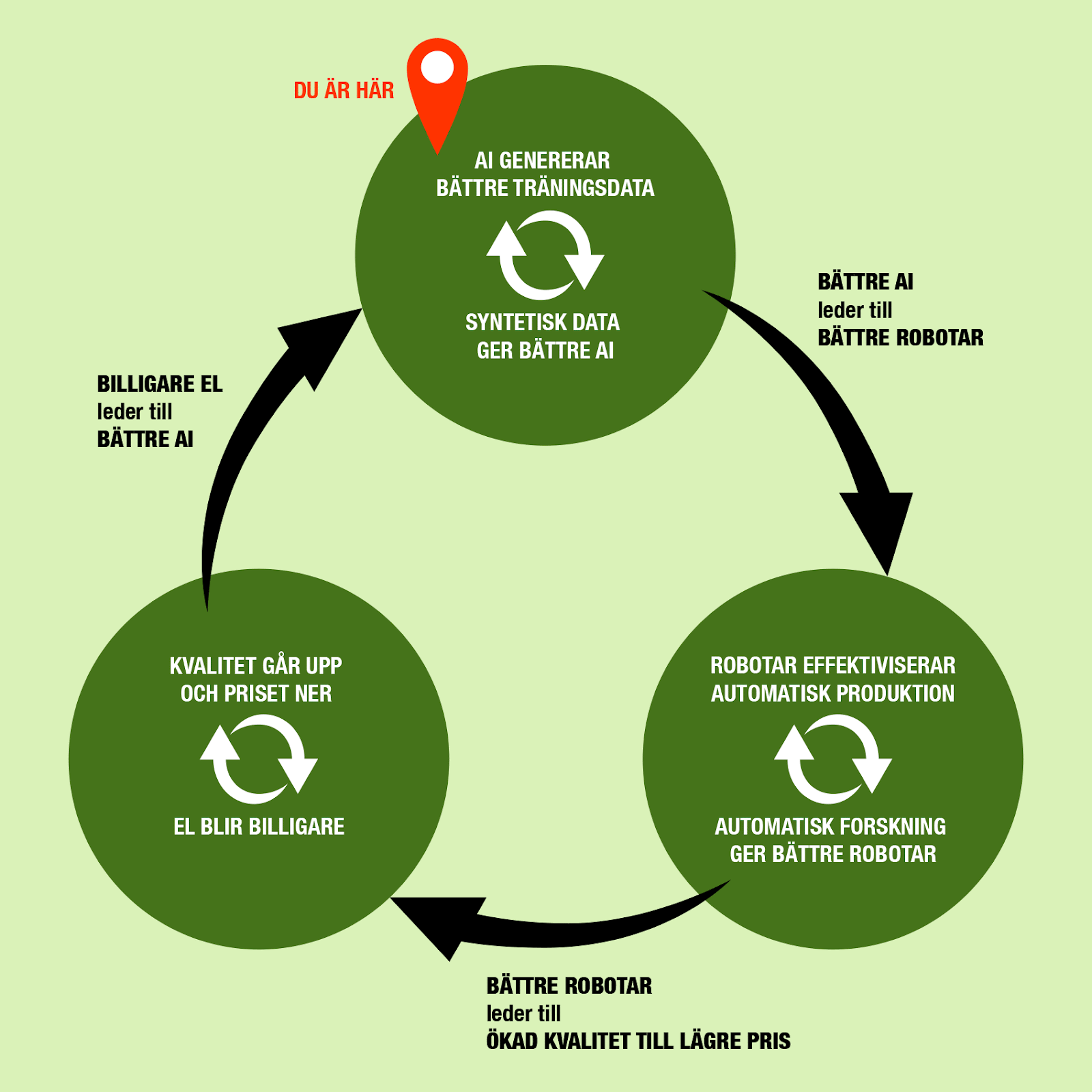 NĂ€r vi fĂ„r billigare el sĂ„ skapas större och bĂ€ttre AI-modeller som i sin tur kan skapa bĂ€ttre syntetiska trĂ€ningsdata. Och the circle of AGI Ă€r sluten â automatisk överflöd med minimal arbetsinsats.