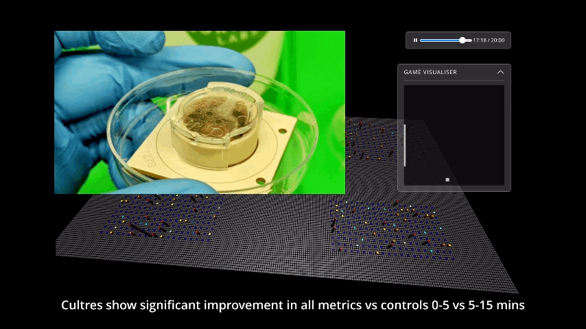HÀr Àr en lÀngre film pÄ nÀr DishBrain spelar Pong.